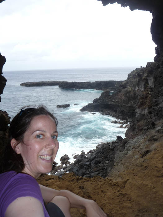 We started this day with a visit to the small, but informative historic museum with artifacts and stories of the island’s history. We then set out to hike to the Ana Kakenga lava tubes, a cave-like structure that opens to a view over the rocky coast. We thought this would be a 2 hour round trip hike and packed accordingly (though we failed to tell one of our companions, Ryan, of the hike idea—he thought we were going to the museum and then out to lunch).