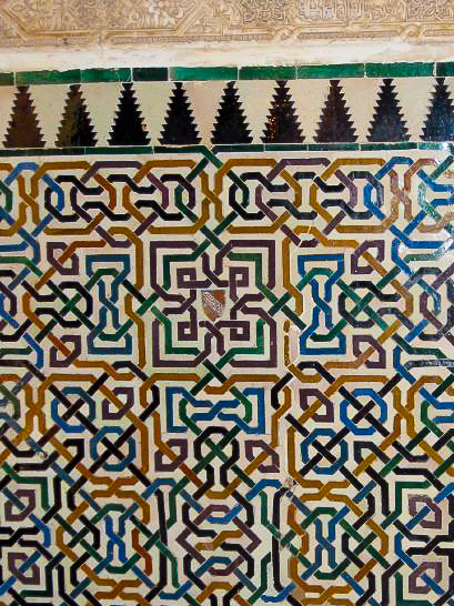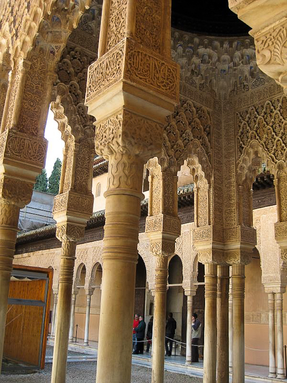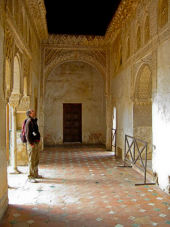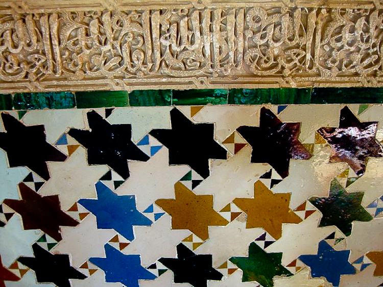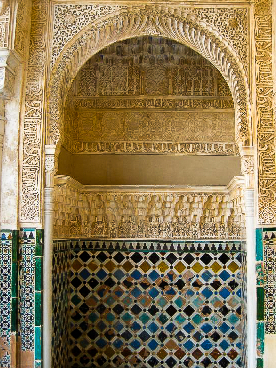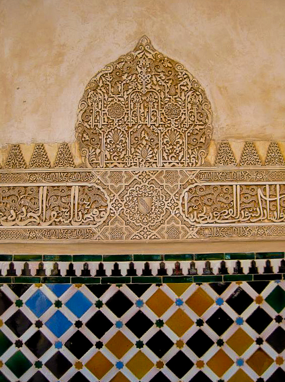 Located on a hill just above the city of Granada, Spain, the majestic Alhambra was built by the Moorish rulers of Spain in the mid 14th century. The fortress and palaces are impressive in scale, intricate detail, and range of colors. Even when we were there on an overcast February day, the buildings were filled with light and the rich colors came through in the saturated wood and hand-painted ceramic tiles. It is no wonder this achievement in Moorish architecture has inspired so many writers, musicians and even astronomers.